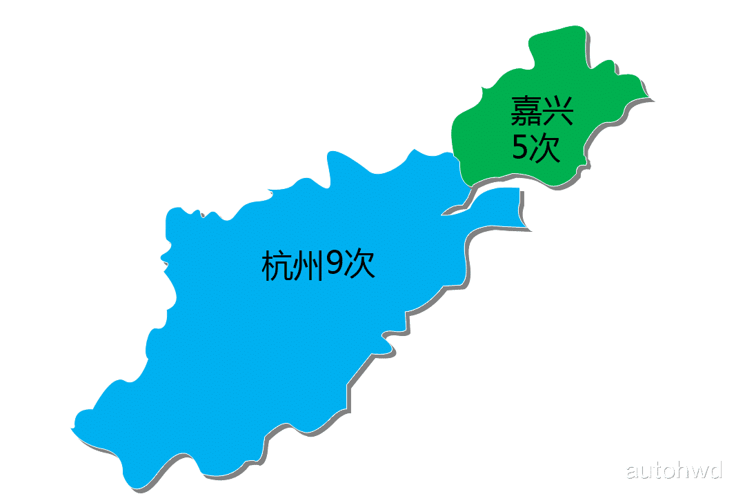 其他各城市,绍兴和衢州2次,湖州长兴、台州、温州和绍兴各1次。