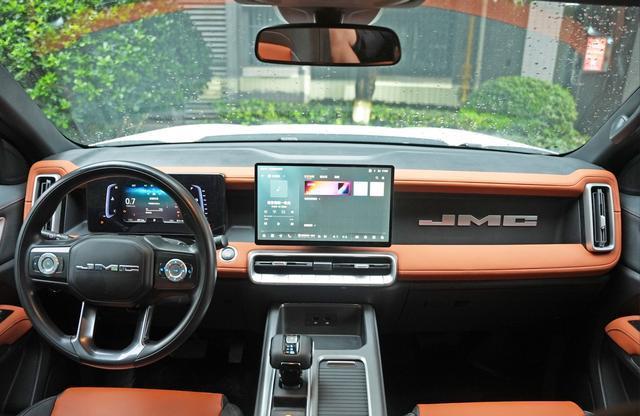 尾部设计依然保持了典型皮卡的个性化,竖直排列的尾灯和熏黑保险杠,让人第一眼就认出它的身份。不同于那些精致但稍显脆弱的豪华SUV,这样的设计更多的是工业感和功能性的结合,就像一个为泥泞土地和崎岖道路而生的实用战士。尾部配置的合理性体现了江铃对用户需求的深刻把握——这些皮卡车更多时候是劳动者的伙伴,在工地、农场、野外兢兢业业,因此要保证尾部强度和实用性是车企必须重点考虑的环节。