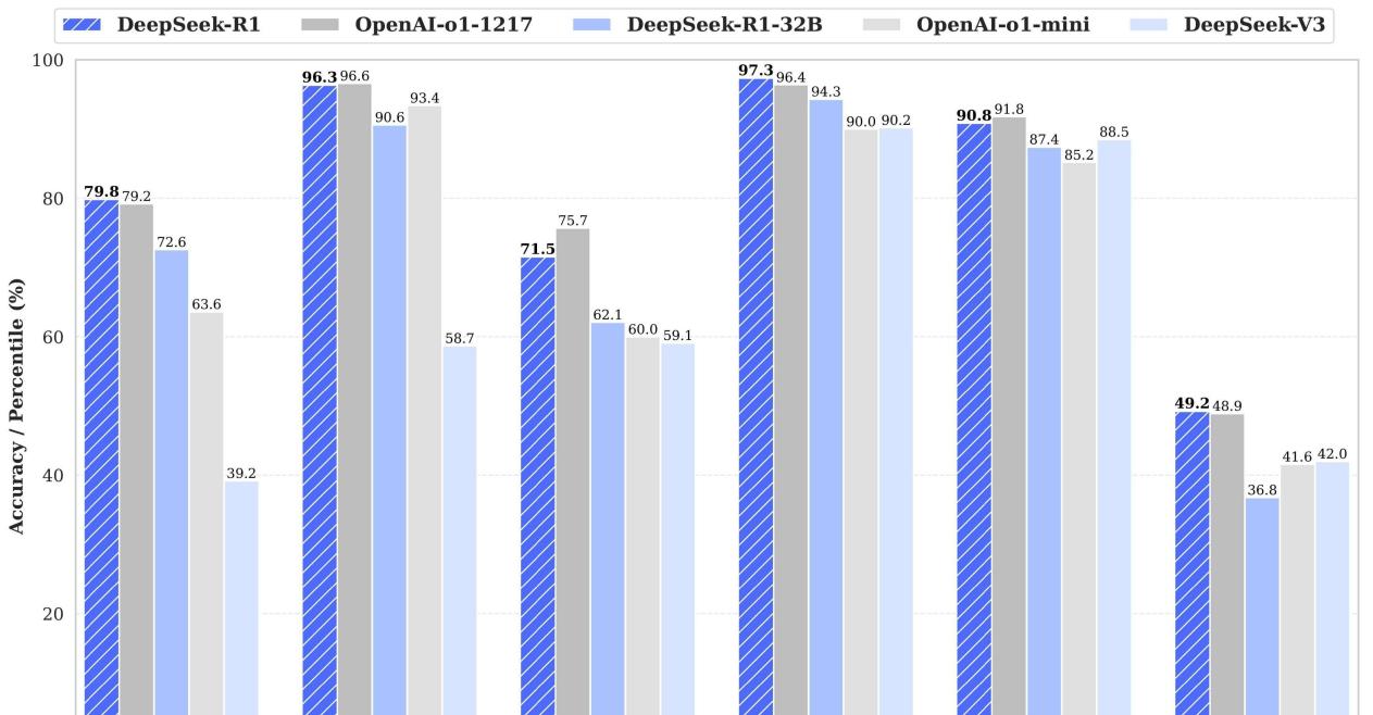 在这样的情况下,以DeepSeek为首的中国人工智能企业,通过各种手段进行了技术上的改进,针对性的推理调整,使得它们在较低的训练成本下达到了与OpenAI相近的模型性能。