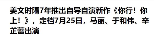 长城网|《姜文时隔7年推出自导自演新作《你行!你上!》,定档7月25日,马丽、于和伟、辛正蕾出演》