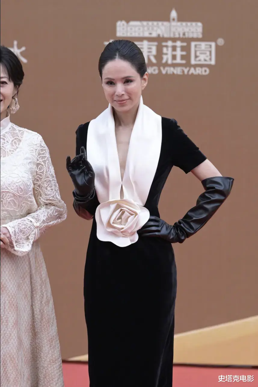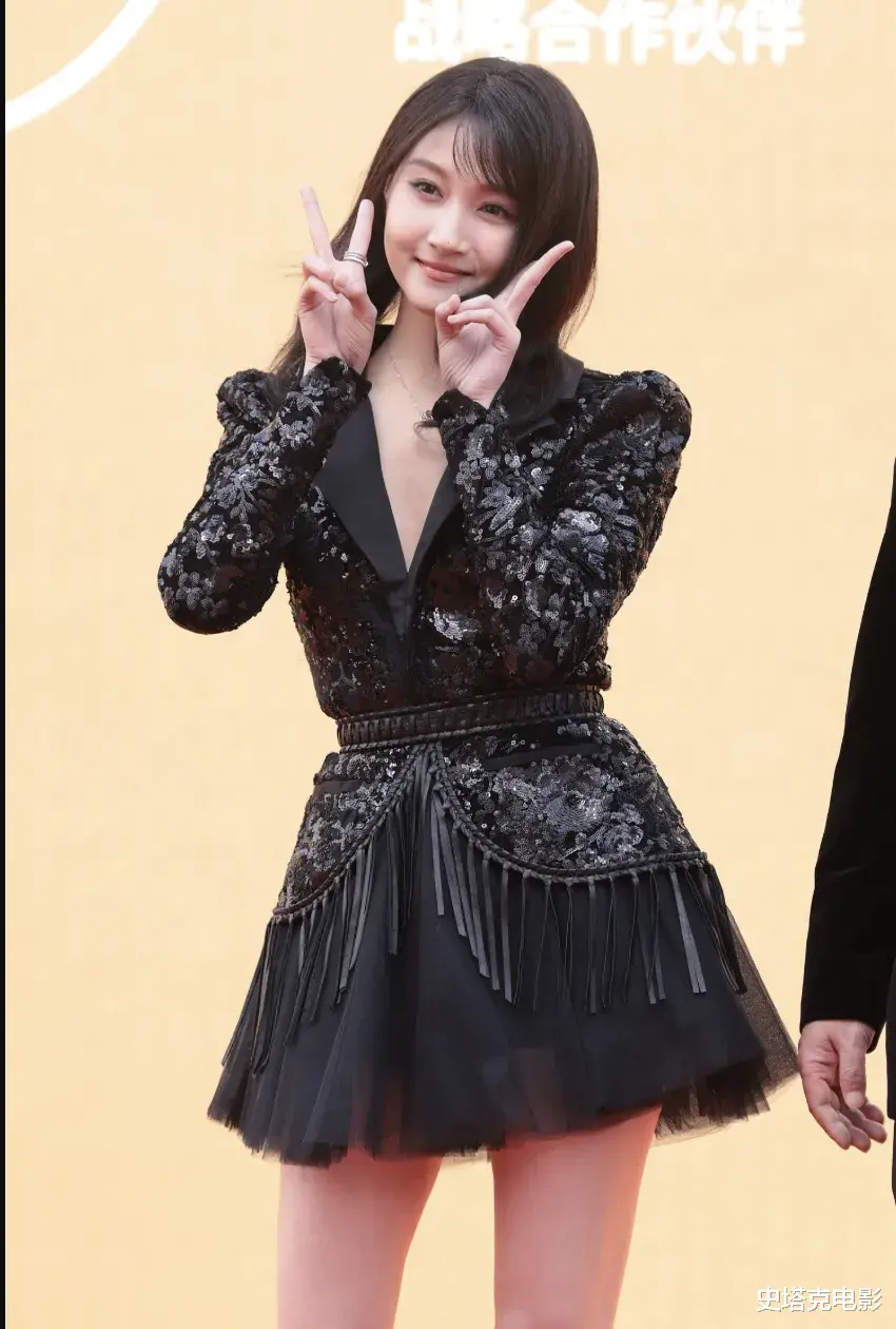 现在的各大活动,只要有大花在场那一定是大花压轴,她一身黑的造型走上红毯,后面扎着丸子头,走出了两米八的气场。