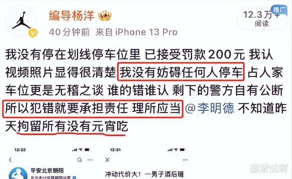 元宵节前他在北京喝多了,看见有人把车停在他觉得是自己的车位上,直接就把人家的车给砸了。