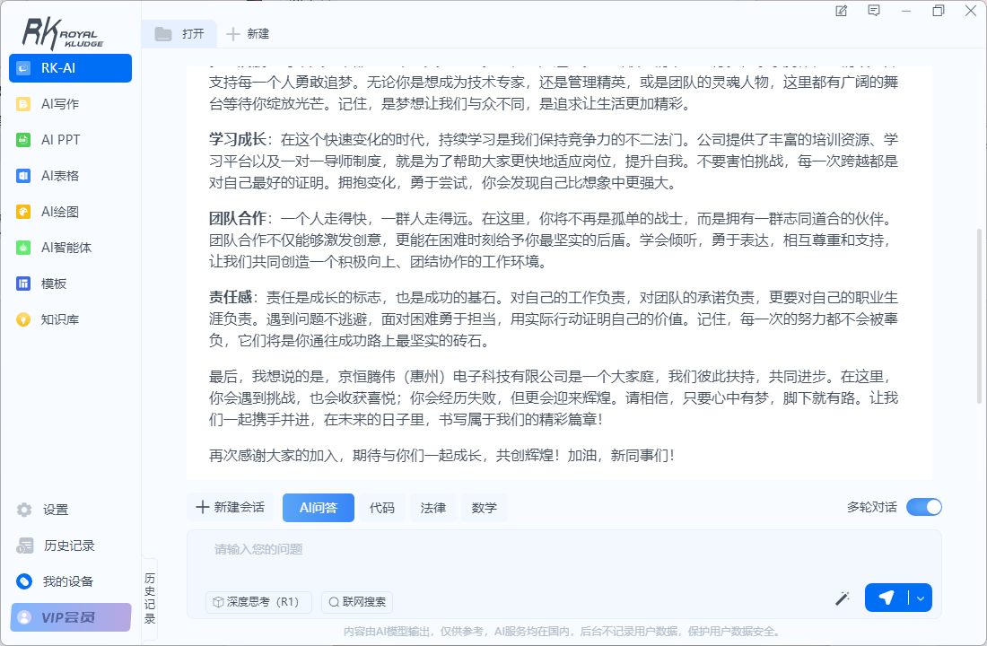 像我有时候要写文案,以前绞尽脑汁,现在只要轻轻一按 AI 键,选择写作功能,输入几个关键词,各种思路和语句就源源不断地冒出来,文采比我自己憋半天写得好多了。