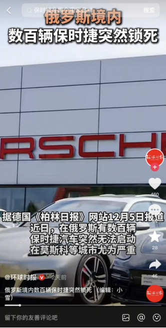 ⑤ 突发特讯!俄罗斯数百辆保时捷突然被锁死,释放危险信号,引爆国际舆论.搜狐网.2025-12-07