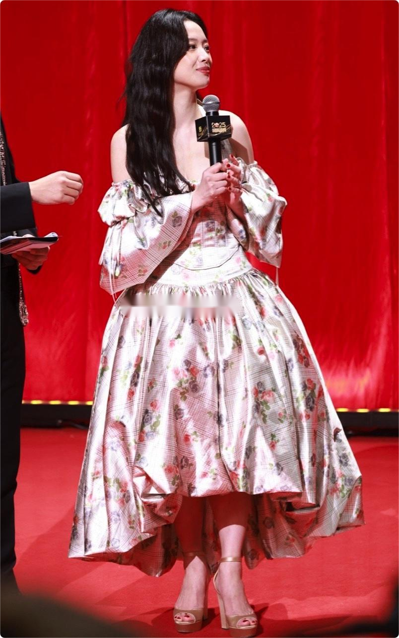 其实以李梦的气质,走简约大气的路线会更出彩,利落的剪裁、纯色的礼服,远比堆砌元素的碎花裙更能凸显她的独特韵味。只能说这次的造型师,属实有点“拖后腿”了。