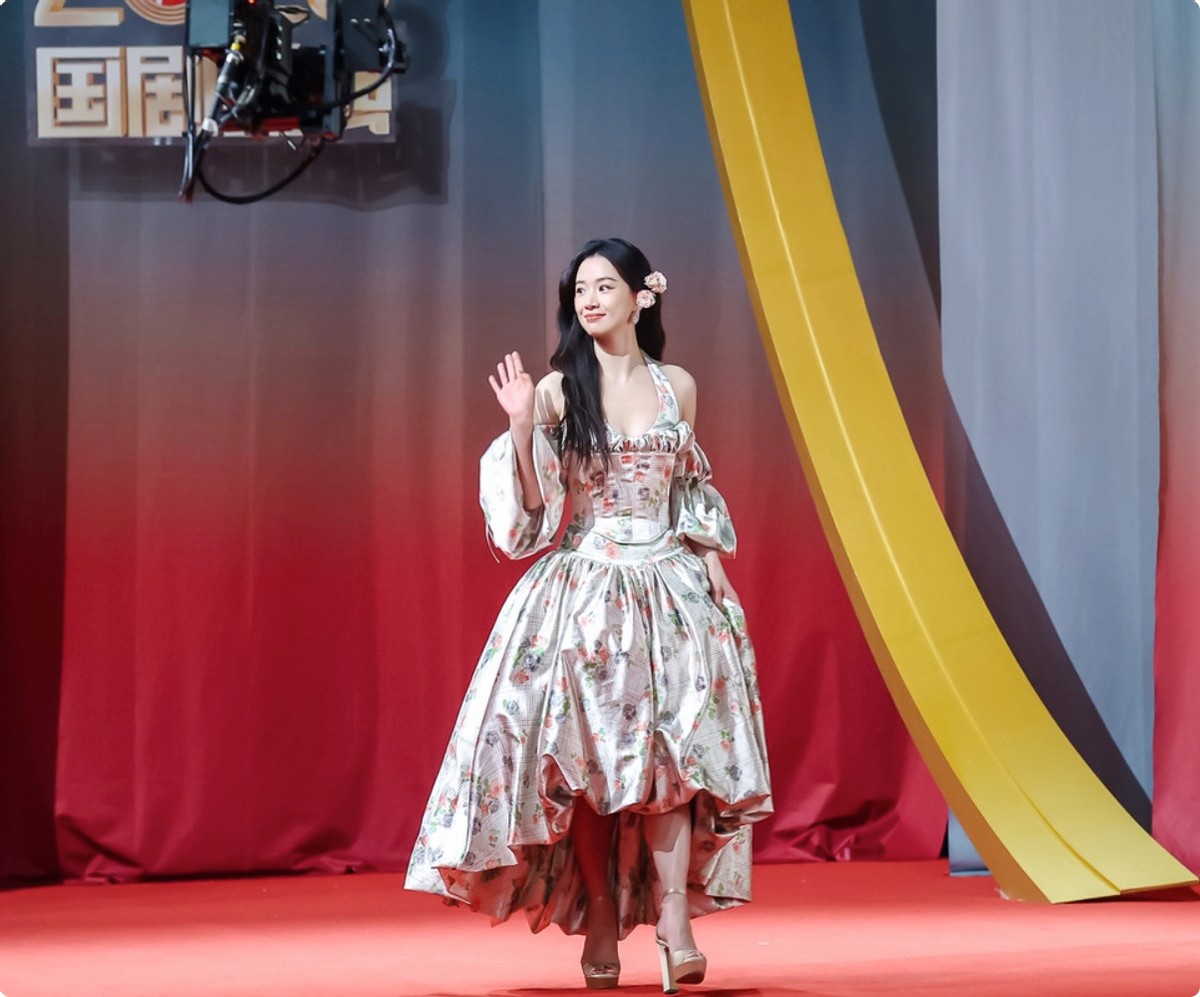她选了一身蓬蓬裙亮相,蓬松的裙摆衬得她身形娇俏,完全没有刻意凹造型的生硬感。
