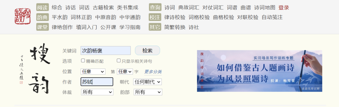 用一个例子就可以证明,对初学者而言,搜韵有多友好。