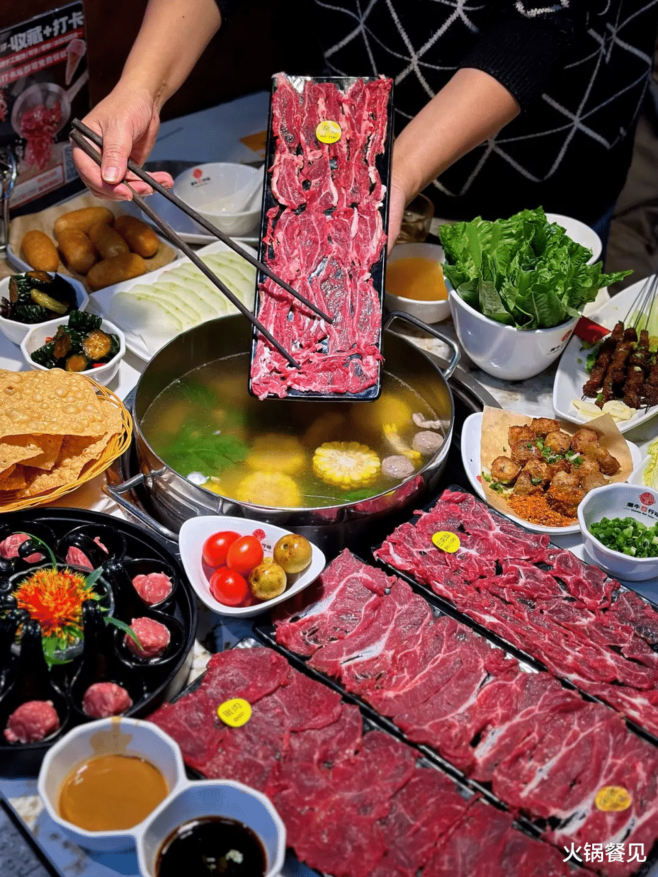 这两年,牛肉火锅还分化出一个重要品类——鲜切牛肉自助火锅,这个品类不火,简直天理难容。