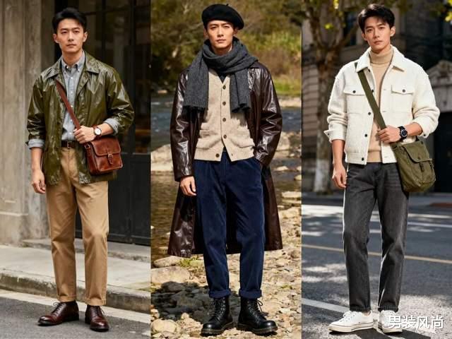 4. 鞋履与配饰——细节定调鞋履推荐德比鞋、马丁靴、复古板鞋,颜色以棕色、黑色为主,皮质鞋履的做旧感更契合复古风。配饰方面,羊毛贝雷帽、皮质邮差包、复古腕表、纯色围巾都是点睛之笔,无需过多,一两件即可提升整体造型的复古氛围。