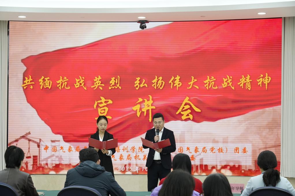 宣讲会集中展现了气象干部教育培训"1+2+6"体系协同发力的实践成果。吴晓鹏总结强调,伟大抗战精神是抗战胜利的精神密码,老一辈气象工作者坚守使命、精准测报激励着一代代气象人接续奋斗。全体青年干部要弘扬伟大抗战精神,胸怀“国之大者”,以爱国情怀为底色,将个人职业发展与气象现代化建设结合,以责任感投身气象事业;要发扬革命英雄气概,勇于改革创新,紧跟科技浪潮,探索教学新模式、新方法,提升培训实效;要坚定必胜信念,传承气象优良传统,书写使命答卷,为气象科技与社会服务现代化贡献青春力量。 (作者:董杰)