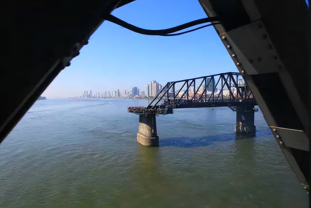 当时,早上10点火车从丹东始发,很快就经过断桥鸭绿江,向窗外望去对面的断桥上有许多游客。从朝鲜这边看江对面更有感触,丹东的高楼大厦看起来尤其的明显清晰,也更加的震撼,形成了鲜明的对比。