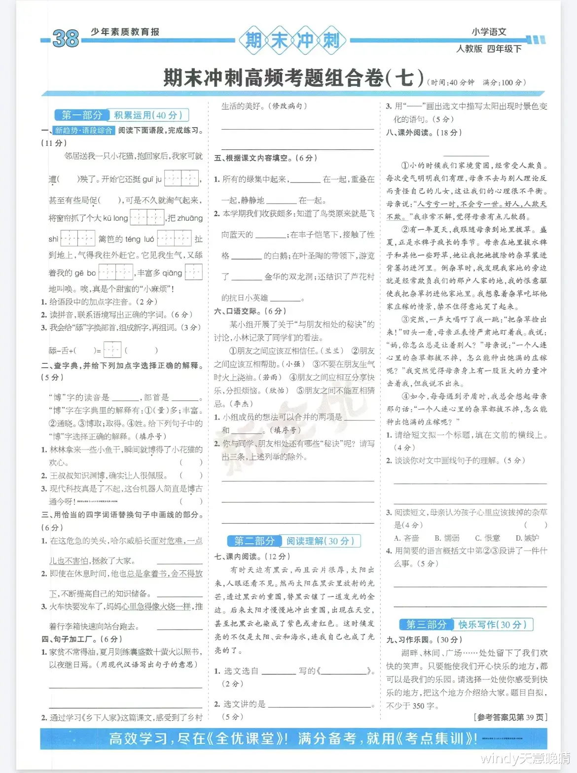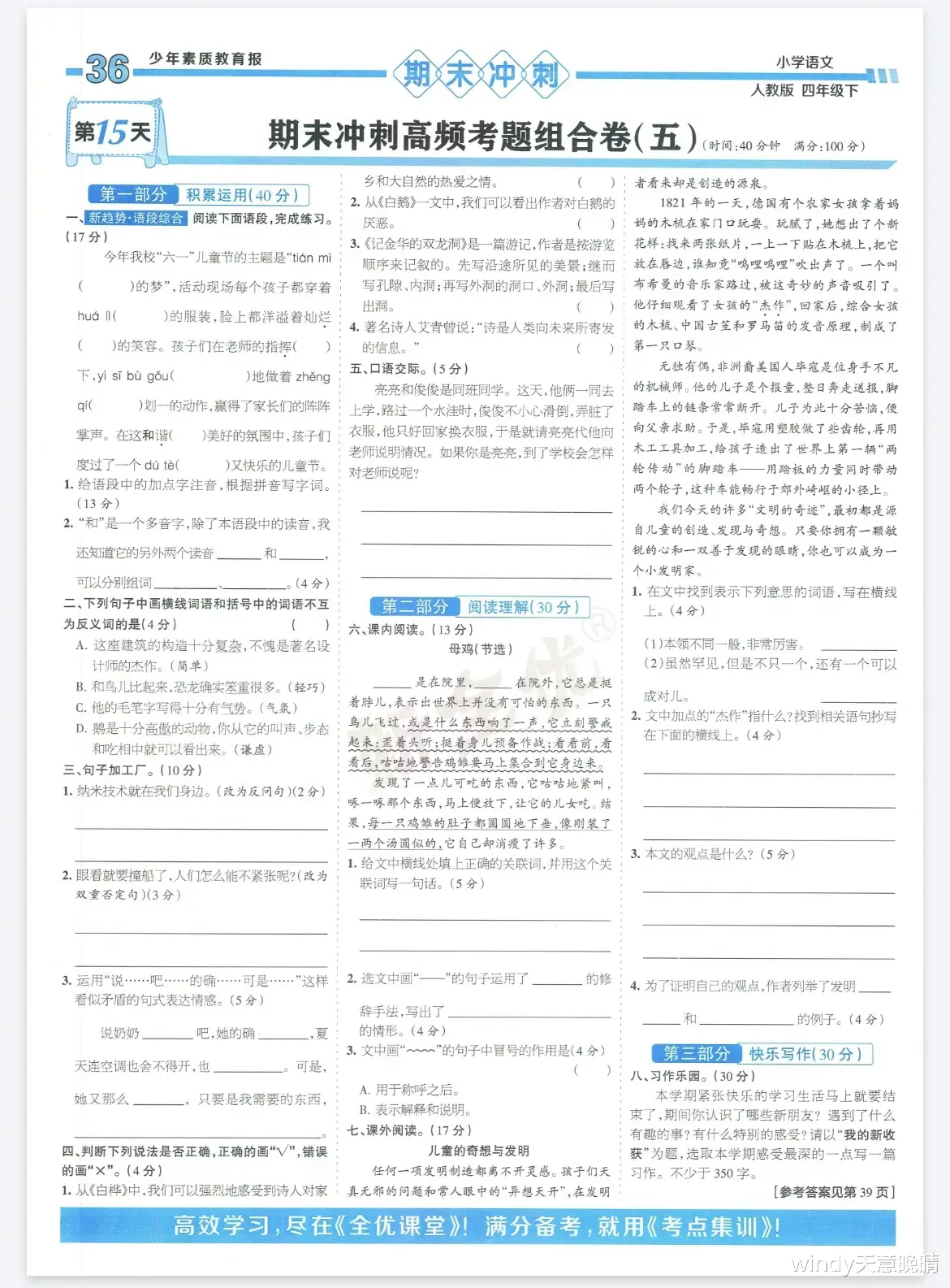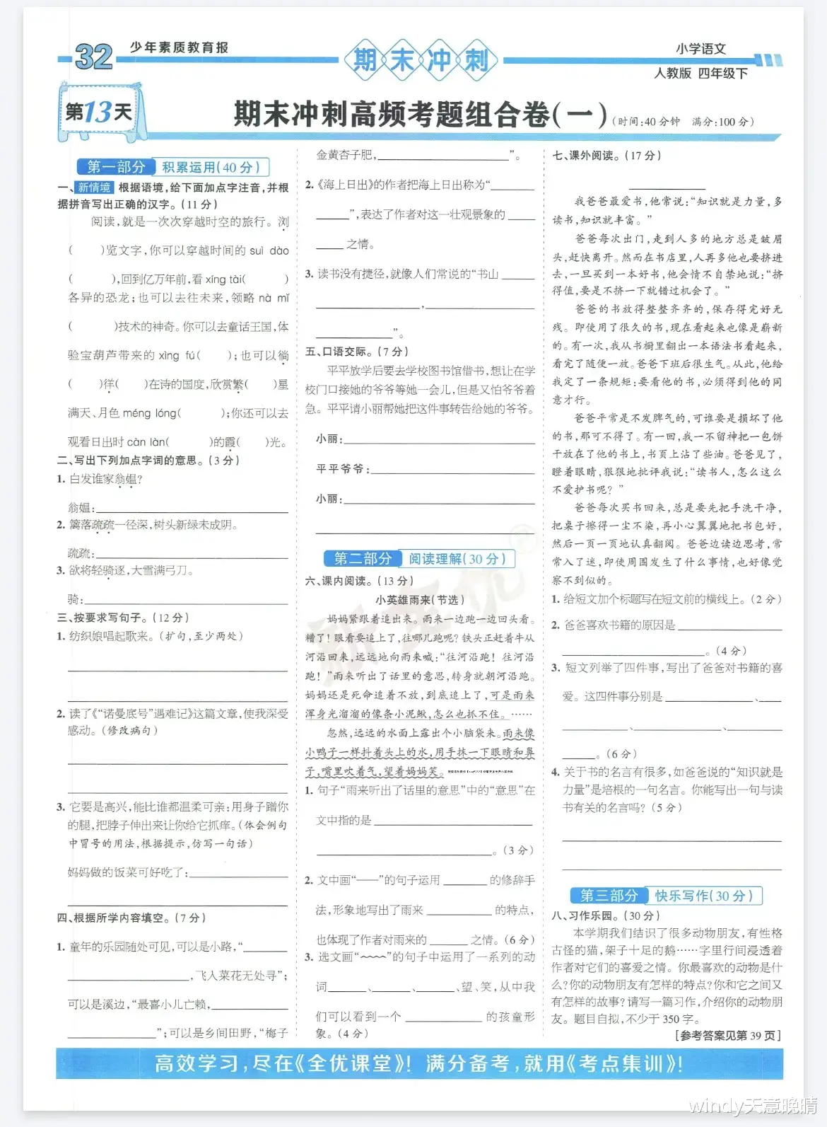 最后提醒:四年级语文重在扎实基础与规范答题,复习时避免贪多求难,确保课本内容"颗粒归仓"。