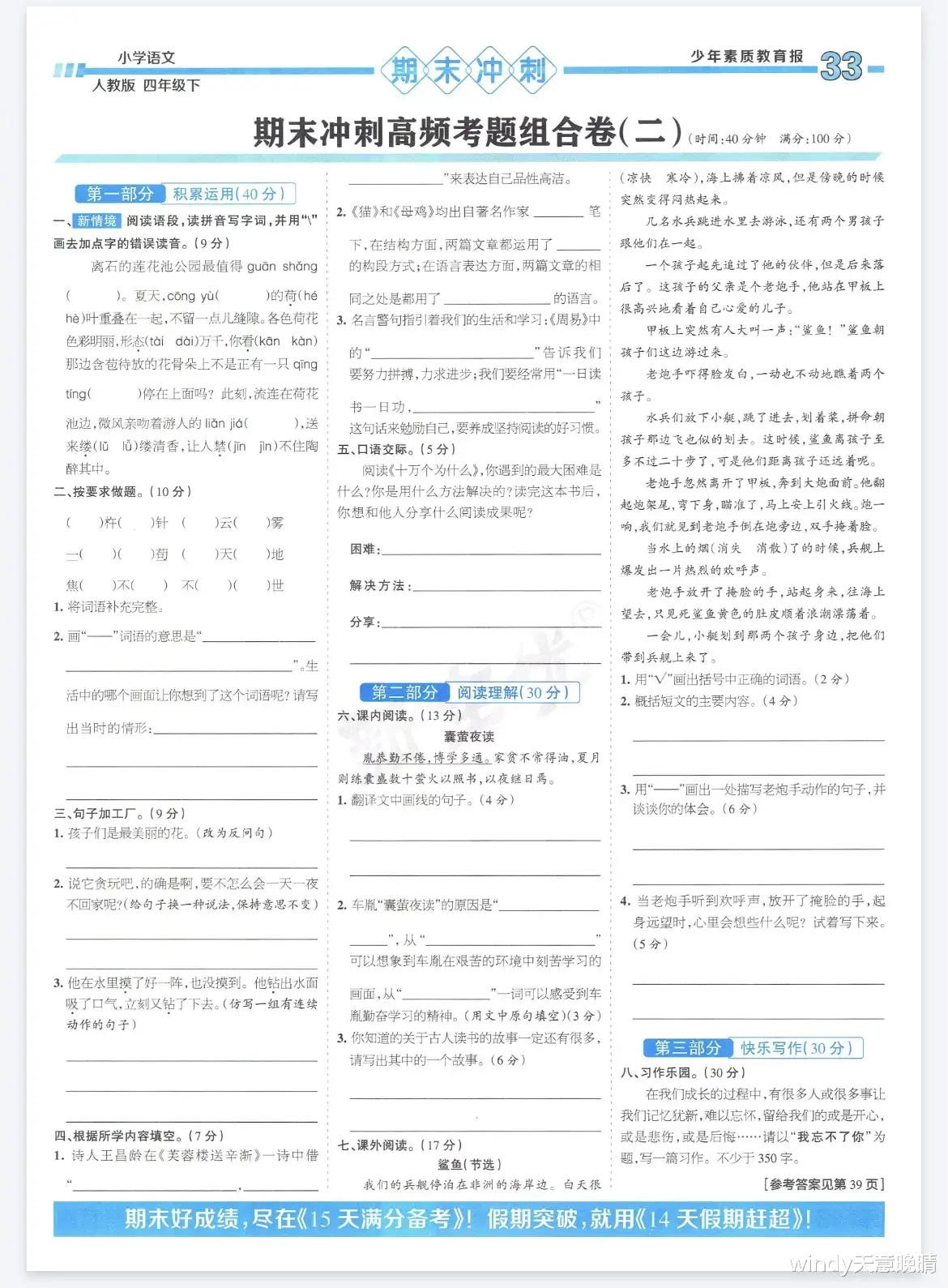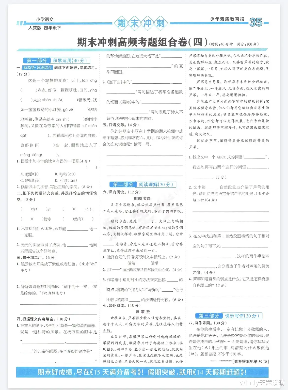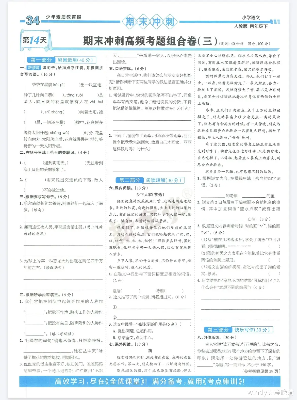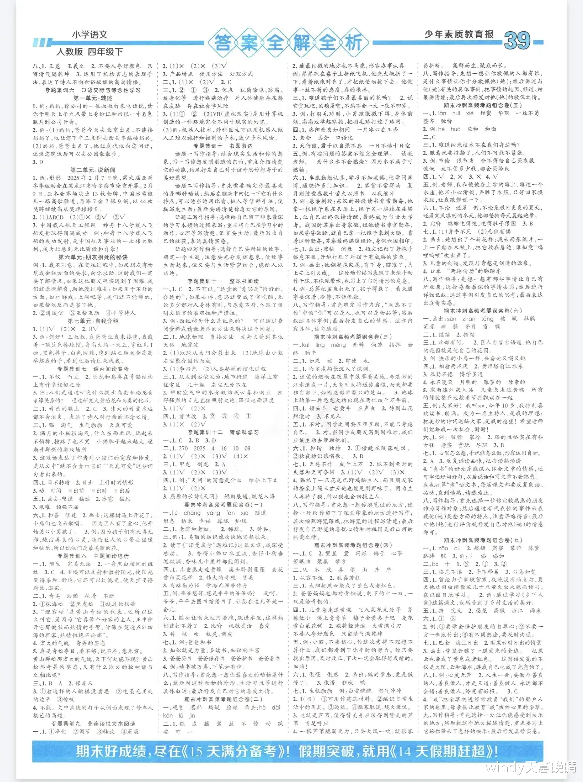 最后提醒:四年级语文重在扎实基础与规范答题,复习时避免贪多求难,确保课本内容"颗粒归仓"。