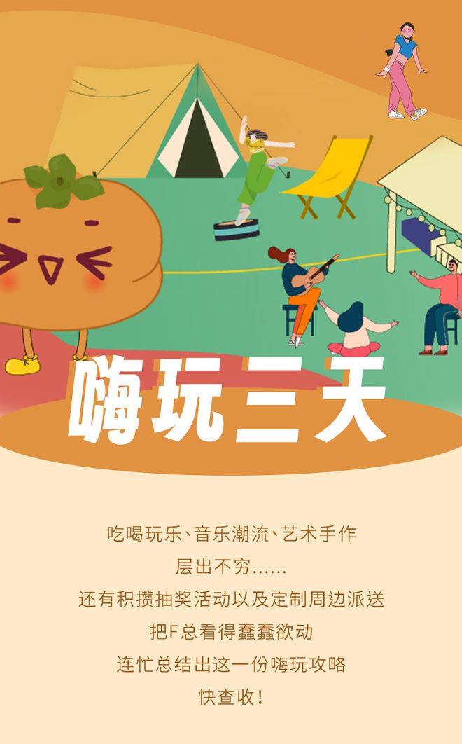此次市集分有音乐舞台区、潮流互动市集区、吃喝玩乐市集区、美陈打卡区,到现场的客户即赠送柿子一颗,若达成任务可送柿子礼盒;不仅带来美好惬意的时间还有众多美食玩乐和好礼相送,所以一定要把规则搞清楚哦~