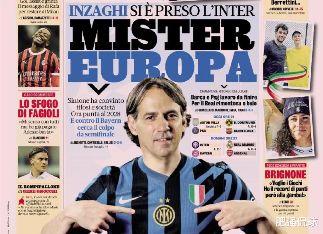 小因扎吉是国米复兴和新冠军周期的关键人物,执教国米将满4年,已经率队获得6座冠军奖杯,是队史奖杯数量第三多的主帅;3年内2次率队打进欧冠四强,同样是队史主帅中仅次于埃雷拉的存在。