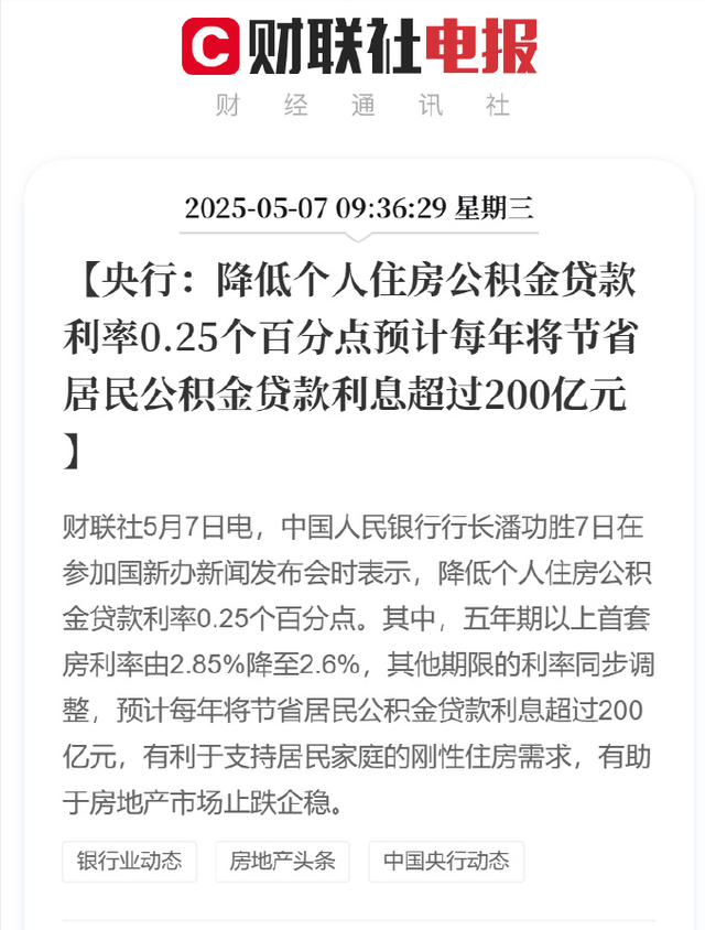 这是继2024年5月存量公积金贷款利率调整后,央行再次释放政策红利,进一步减轻居民购房负担。