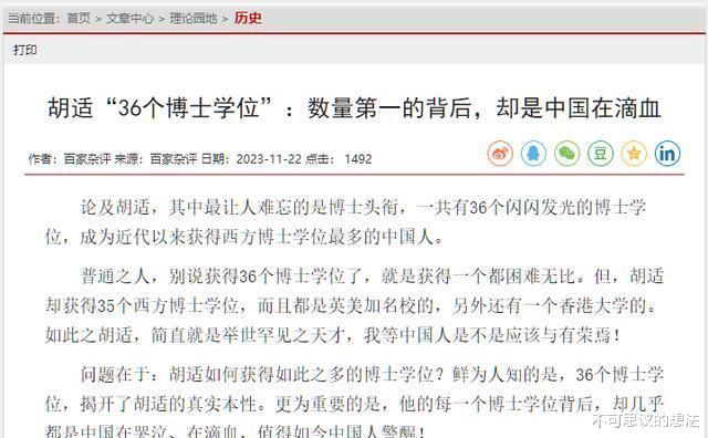 百家热议2023年11月22日资讯:胡适拥有“36个博士头衔”,这数字虽独占鳌头,但背后却映照出中国的无奈。