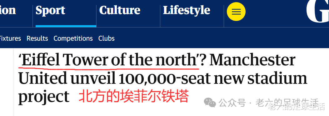 又因为他的三根桅杆,最高的那根有200米长,新特拉福德也被媒体们称为“北方的埃菲尔铁塔”。