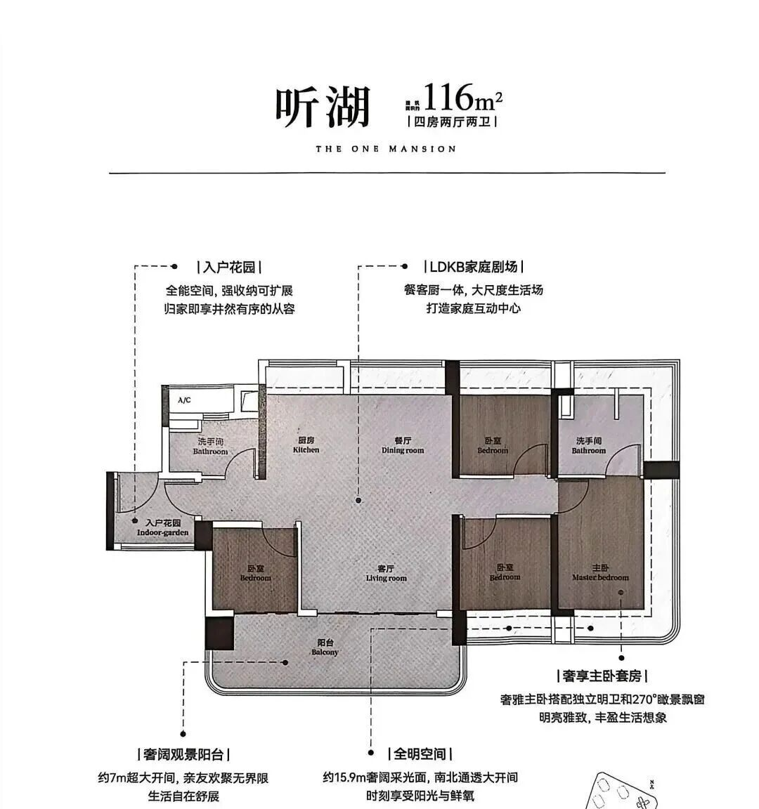 116-120㎡户型拥有15.9米奢阔采光面,南北通透,阳光和鲜氧直达室内。