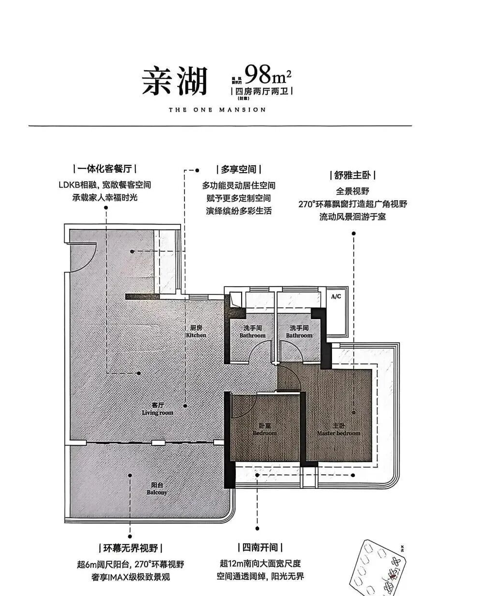 户型设计:主打高使用率的“新规户型”,如约98㎡可做四房,且全南向设计保障了采光和通风。