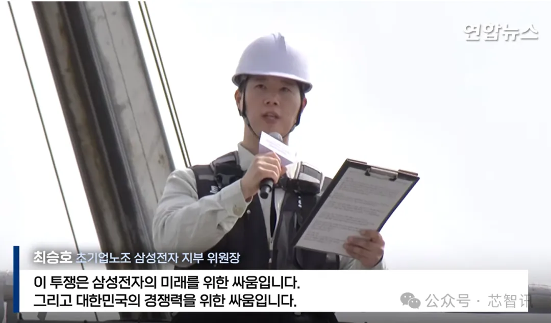 工会主席崔胜浩(Choi Seung-ho)在讲话中强调:“我们聚集在这里,是因为我们已经忍无可忍了。这场斗争是为了三星电子的未来,也是为了韩国的竞争力。”