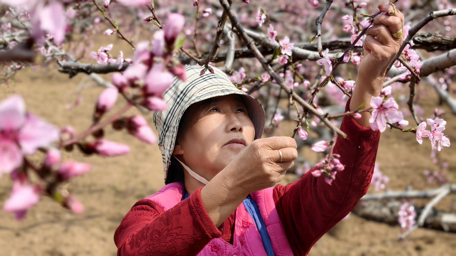 4月1日,河南省三门峡市陕州区张汴乡刘寺村3000余亩桃花竞相绽放,漫山遍野粉艳动人,宛如花海。和煦春风里,朵朵桃花娇艳欲滴,蜜蜂在花间翩跹飞舞、采撷花蜜,尽显盎然生机。田间地头,种植户抢抓农时开展疏花作业,穿梭于花枝间精心打理。繁花美景与辛勤劳作相映成趣,既勾勒出秀美田园画卷,又孕育着新一年的丰收希望,成为乡村春日里一道亮丽风景线。(记者 王红权)