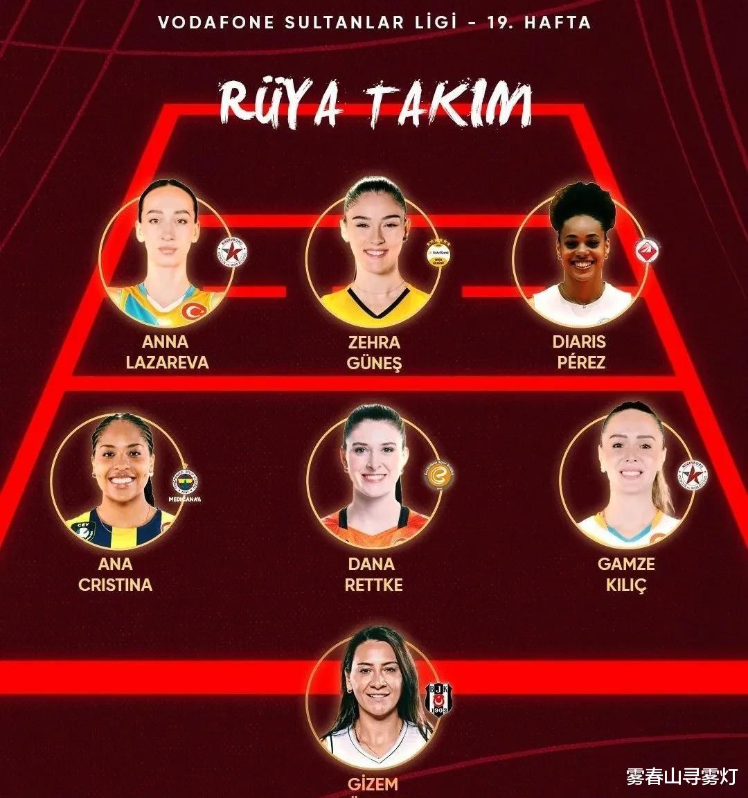 第19轮最佳阵容的公布,无疑是土耳其女排联赛的一大亮点。 主攻线上,费内巴切的安娜·克里斯蒂娜和土耳其航空的迪亚里斯·佩雷斯凭借出色的进攻表现成功入选。两位球员不仅拥有强大的进攻火力,而且在拦网和防守方面也展现了不俗的能力,是各自球队取胜的关键。副攻位置,瓦基弗银行的泽赫拉·居内什和阿拉斯卡戈的达娜·雷特基的表现同样令人印象深刻。泽赫拉·居内什作为土耳其国家队的核心成员,技术全面,经验丰富,是球队的定海神针;雷特基则以其强大的拦网和进攻能力著称,为球队贡献巨大。接应位置,安娜·拉扎列娃凭借其精确的进攻和出色的跑动能力入选,而库泽博鲁的甘泽·克勒奇则以其稳定的二传和组织能力为球队提供了坚实的保障。最后,贝西克塔斯的吉赞·古雷申凭借其出色的防守和稳定的第一传,获得了自由人位置。