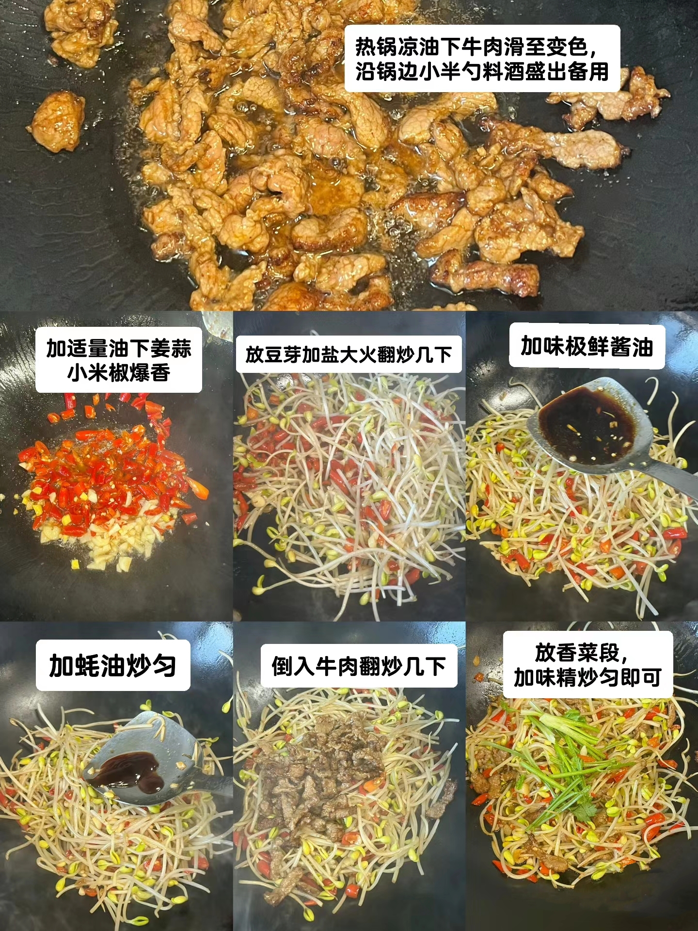 豆芽炒牛肉超级下饭菜,食欲大增!