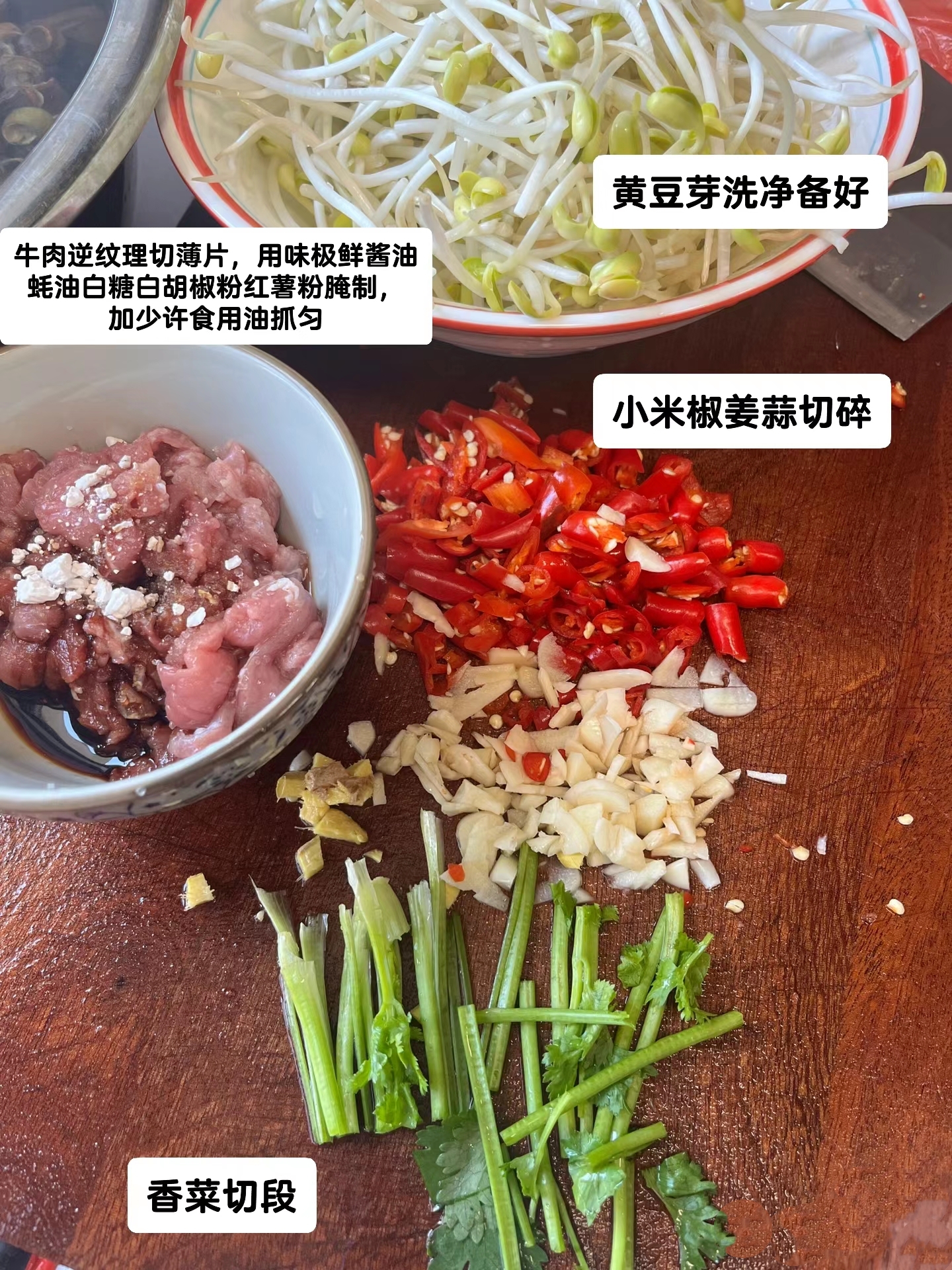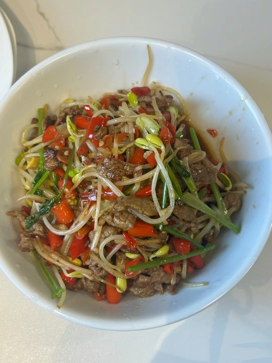 今天分享一道超级下饭的家常菜——豆芽炒牛肉!这道菜真的是让人食欲大开,鲜嫩的牛肉搭配爽脆的豆芽,再加上那鲜香辣的味道,简