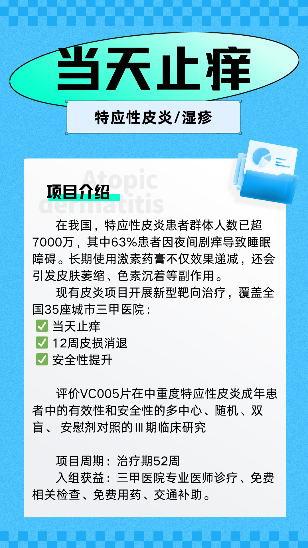 当天止痒,12周皮损消退!精准靶向改善,全国均可报名
