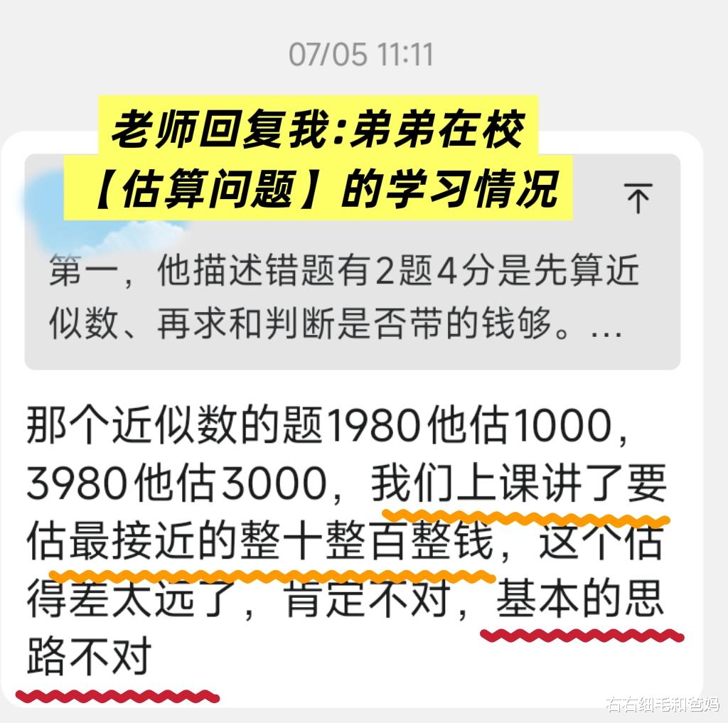 我家双胞胎弟弟期末错了2道估算的题目,我请教了下数学老师两个问题: