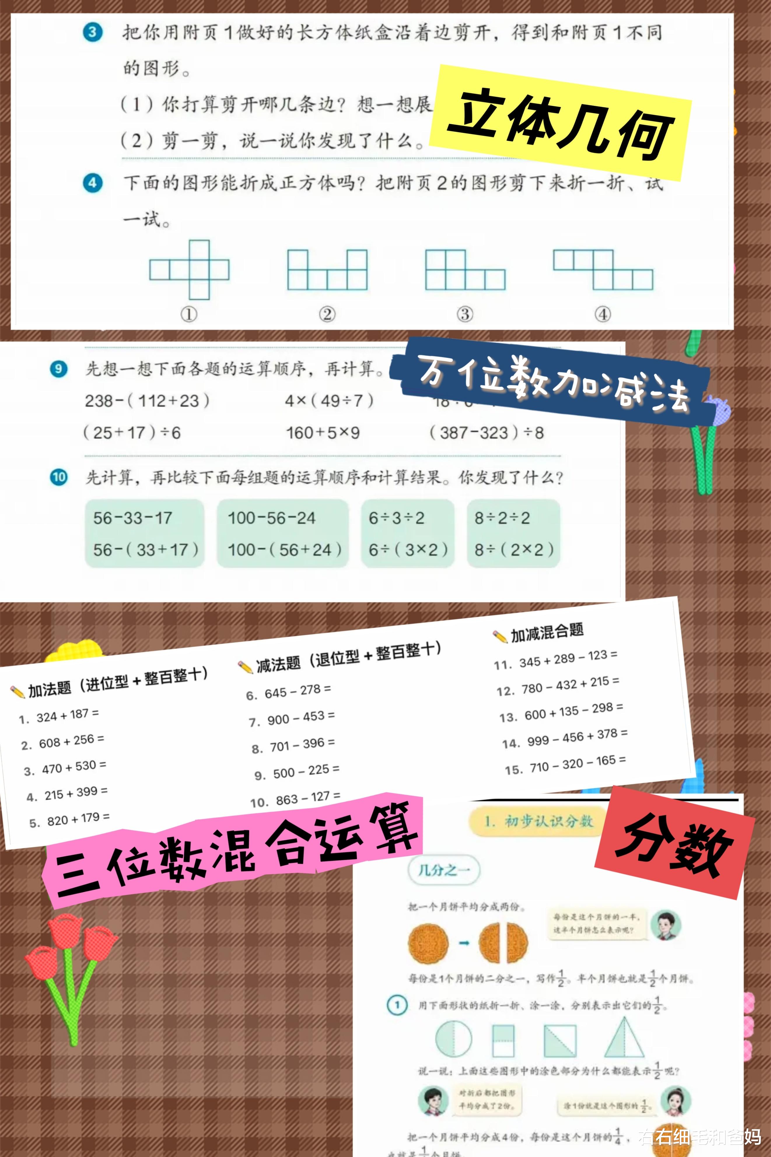 三年级一直是小学数学的分水岭,计算加深、几何开始启蒙,新教材更是突出了这些特点。