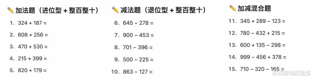 暑假重点补一补“万以内加减法”“复杂加减混合运算”这两块内容。