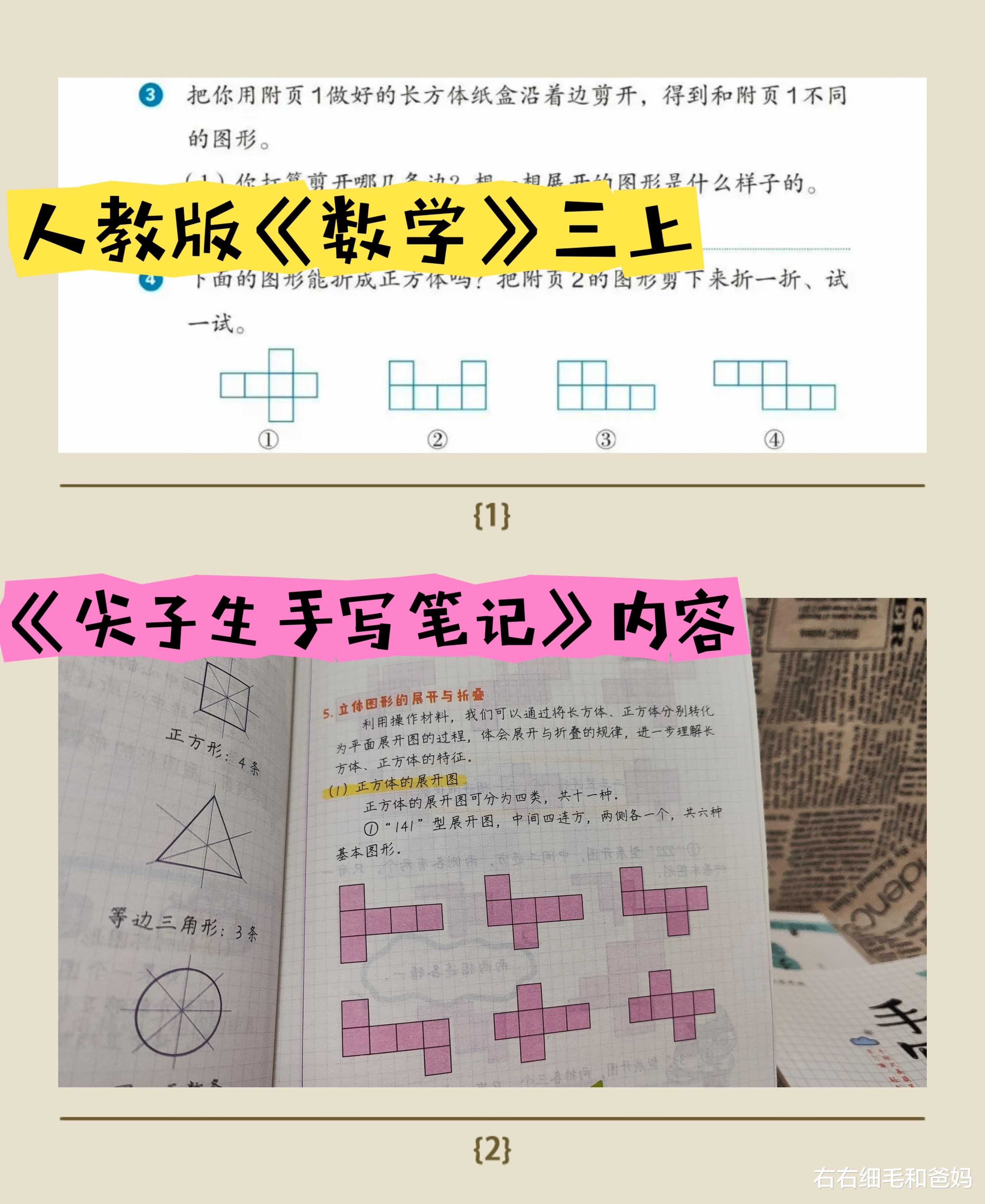 当小敏家孩子对着“长方体展开图”发懵时,笔记用彩色立体拆解图+箭头动态标注棱长关系,空间感瞬间立体化!