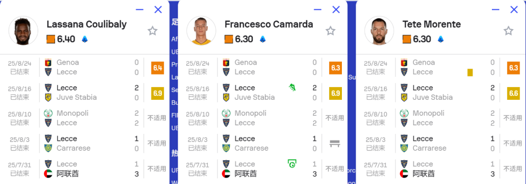莱切:球队缺少稳定得分点,上赛季锋线三叉戟莫轮特、卡马尔达和班达联手进球没有上双,导致球队整体进攻处于异常乏力的情况,面对打三中卫体系的米兰,三人恐怕难以制造进球威胁,就看能否把握住米兰边路防守空档了。中后场新赛季变动不大,首战热那亚没有遭遇太大的防守压力,但上赛季面对前排球队丢分严重,防守存在明显不足。