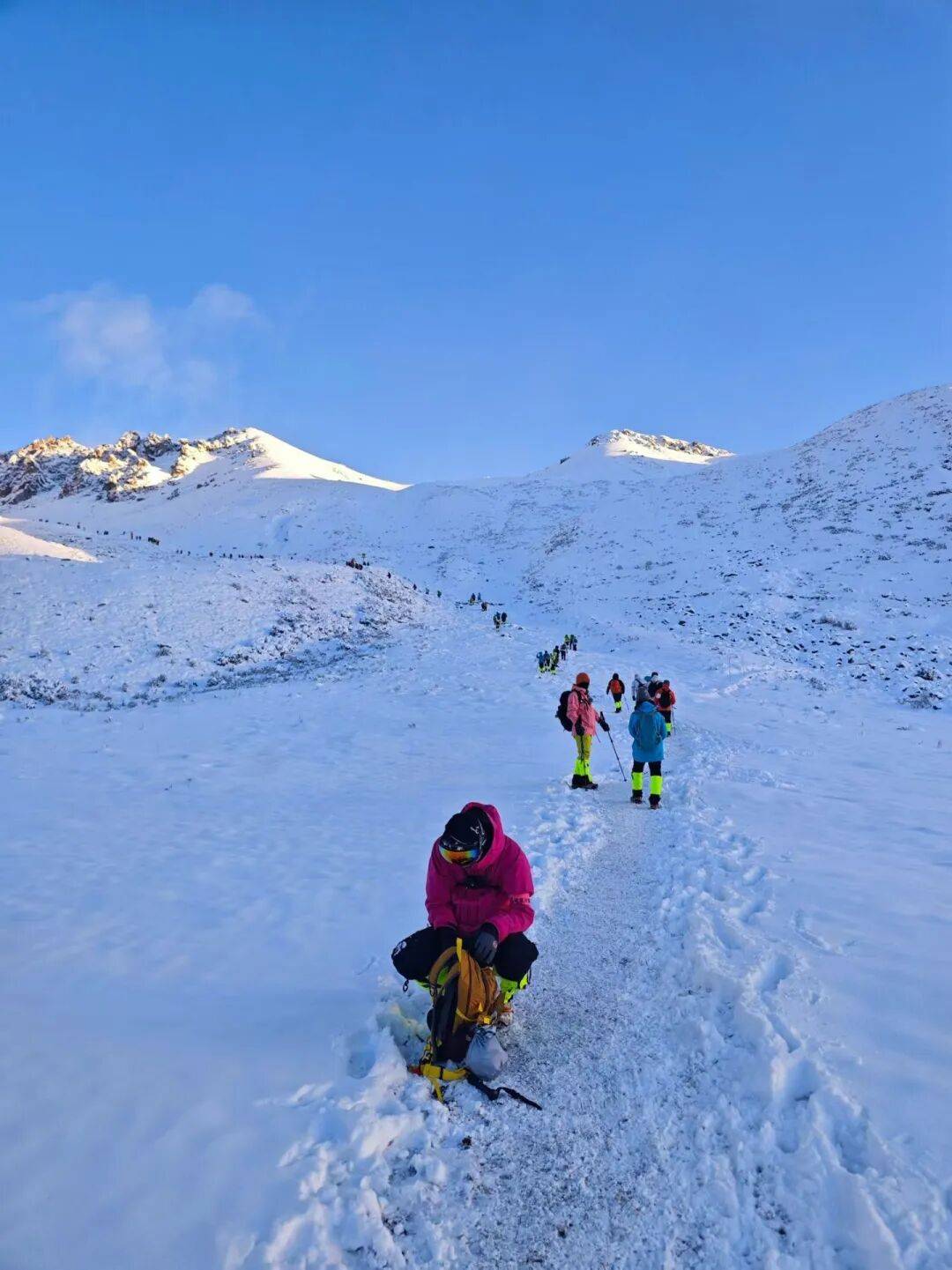 冬日的三奥雪山,彩林悄然褪去,更显巍峨雄峻,沿着山路向上,穿过林间、越过碎石,耳边只留下风声为你加油呐喊。