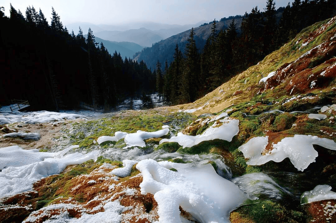 如果想找个地方静静心,拐进卡龙沟就对了。苔藓柔软,彩池清澈,走进这里,连脚步声都自动调成“静音模式”。