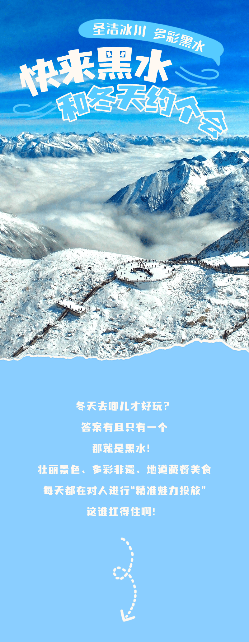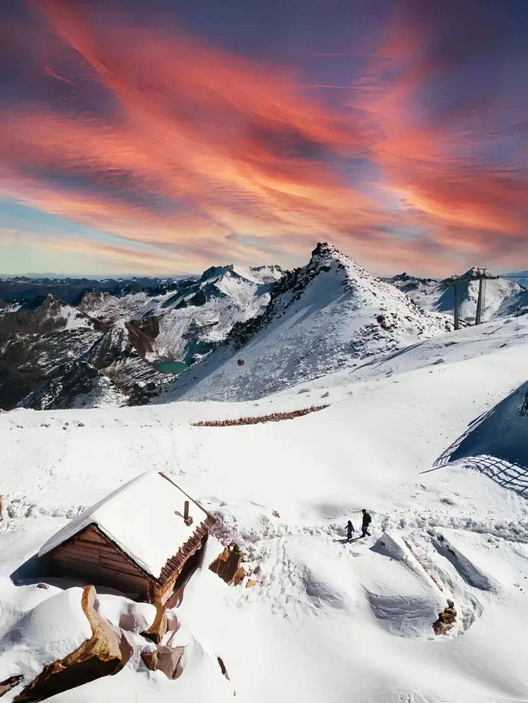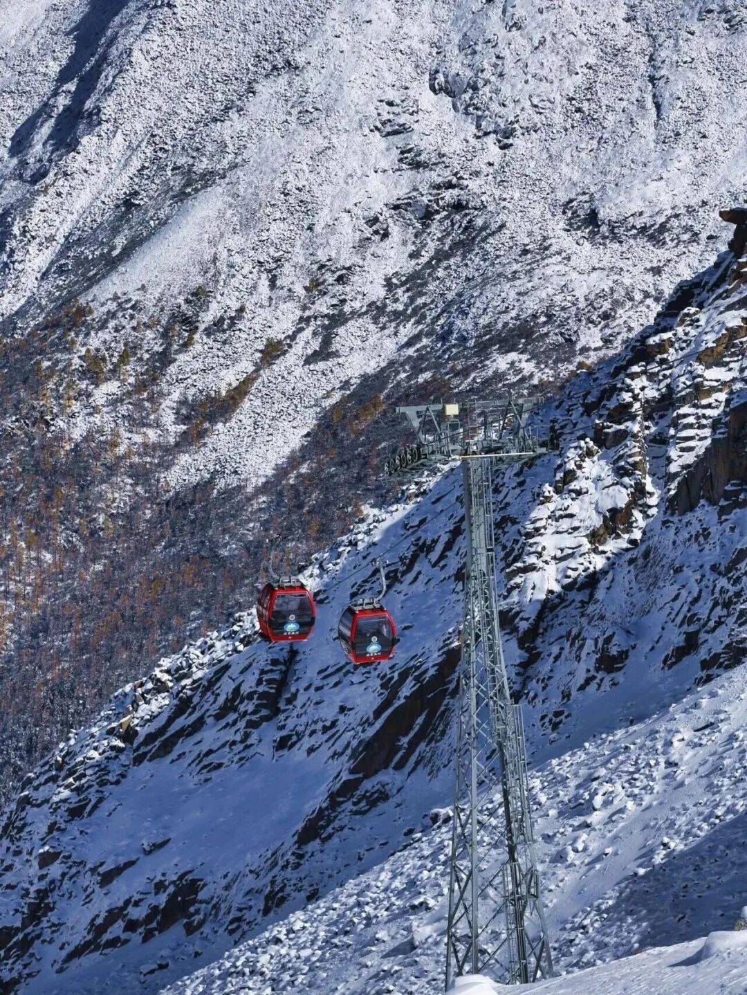 在达古冰川,坐着全世界海拔最高的客运缆车缓缓攀入云中,脚下是沉睡万年的圣洁冰川,眼前是铺展到天边的纯白世界。