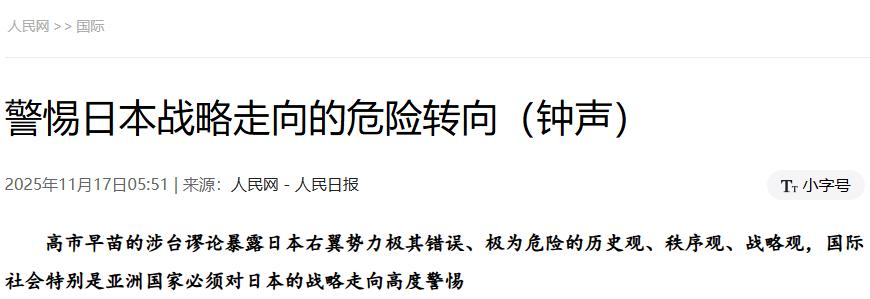 这也是为什么,即便遭遇中方实打实的军事反制,即便特朗普本人都对日本的冒进行为表示过不满,高市早苗及其背后的政治势力依然不肯彻底收手。他们不是在保护台湾,也不是在维护所谓“民主秩序”,而是在利用地区冲突为日本自身的战略转型服务。