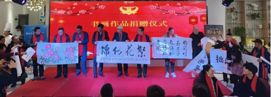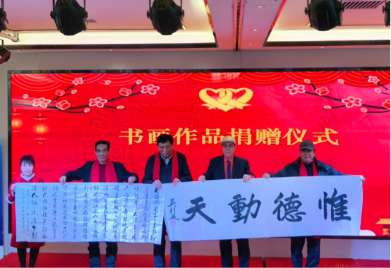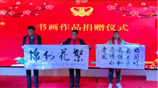 活动期间,多项重磅环节接连上演,氛围庄重而热烈。心连心艺术团向西安成城裕朗商贸有限公司等爱心支持单位赠送锦旗,以“城裕朗风襄善举 连心艺彩耀长安”“情系志愿添助力 酱香暖心普华章”等真挚题词,致谢其在公益道路上的坚定陪伴与鼎力助力。书画捐赠环节亮点纷呈,吴军校、弓小钟、王英、余剑峰、穆亚威、王建锋、金岳田、徐滨、吴引定、王鸿龙、王养利等多位书画名家现场挥毫捐赠佳作,著名文化学者、西部新闻网总编辑、艺术团高级顾问张龙特意题写“心连心情暖三秦大地”墨宝,笔墨丹青间尽显对公益事业的深厚情谊与大力支持。李星、冀福记两位老师全程专注参与各项环节,对艺术团的公益实践与文化惠民举措给予充分认可,并不时与现场嘉宾交流心得,其到场本身便是对志愿服务与文化公益事业的有力支持。同时,活动还完成了副团长、高级顾问增补任命,进一步夯实组织建设基础,为深化政企公益合作筑牢保障。