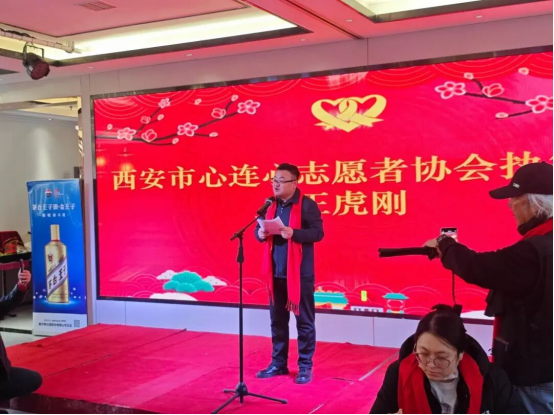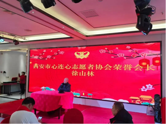 活动现场,全体人员齐唱国歌,正式拉开活动序幕。西安市心连心志愿者协会秘书长王锦担任本次活动主持人,以沉稳干练的风格串联起各项议程,保障活动高效推进。艺术团执行团长樊宏致欢迎词,详细介绍了徐山林、李星、冀福记等出席嘉宾,着重提及两位名家在文化领域的深厚造诣与行业贡献,向他们及长期以来鼎力支持公益事业的爱心企业、各界朋友表达诚挚谢意,朴实真挚的话语赢得现场阵阵掌声。
