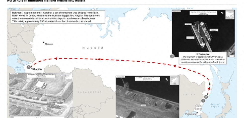 像是一家智库机构拿出的卫星照片,声称俄朝是通过边境铁路口岸进行转运;而没过几天,白宫这边,却说双方走的是海路,现在在港口进行装卸,然后直接运到俄罗斯西部。这就让说辞的可信程度大打折扣。