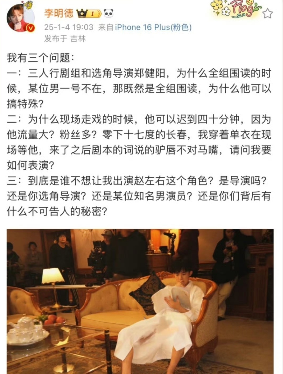回顾这场风波的起因,年初时,合作演员李明德在网络上连发多条动态,控诉马天宇在零下低温的恶劣天气下让其苦等,甚至指责对方“驴唇不对马嘴”、不看剧本。一时间,舆论被点燃,许多不明真相的网友纷纷指责马天宇“耍大牌”。当时,马天宇方面虽然发布了声明否认,但舆论并未平息。如今,马天宇在访谈中再次重申,自己从未违背过约定,对于那些不实的指控,他选择用时间来证明真相。