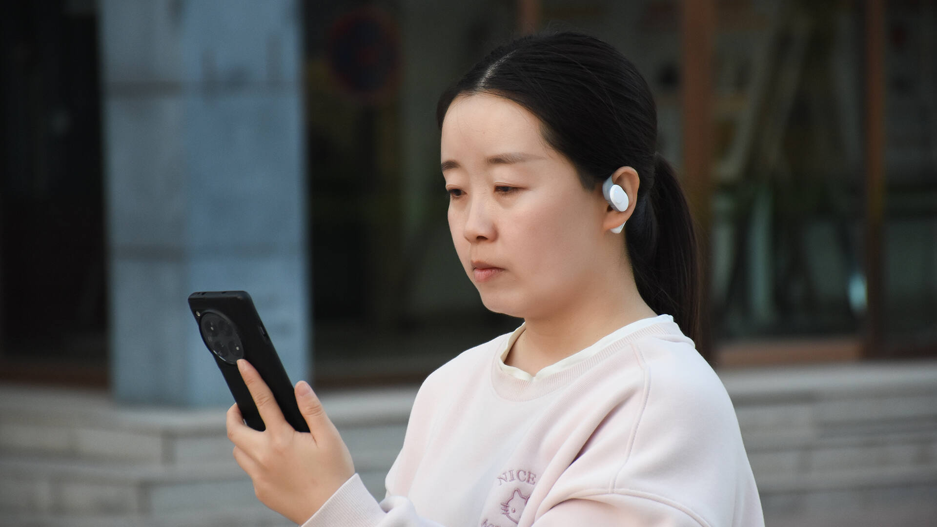 柔韧的流线型耳挂搭配亲肤的硅胶材质包裹,佩戴起来非常舒服,和耳朵牢牢贴合,既没有挤压感,又很牢固,运动或者跑跳的时候丝毫不会松动。单只耳机的重量只有8克,再加上挂耳佩戴方式,将受力点平均分散开,相较于入耳式来说,长时间佩戴负担会小很多,戴眼镜的同学也不用担心眼镜腿和耳挂“打架”。