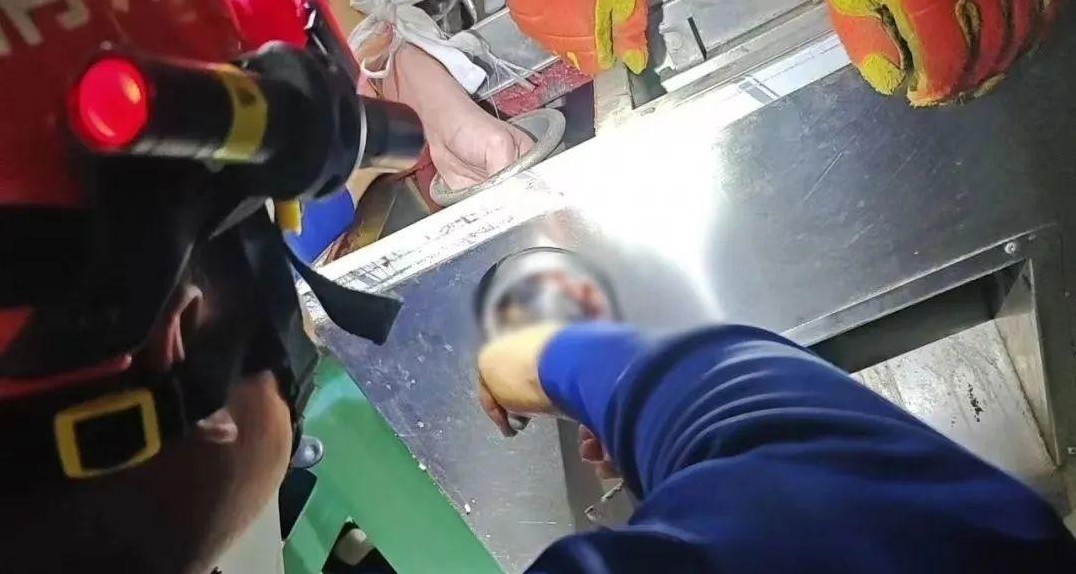 消防员到达现场经观察女子的手被死死卡在绞肉机内无法动弹她的脸上满是痛苦之色根据现场情况消防员立即对绞肉机进行破拆