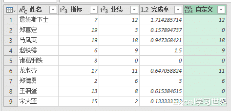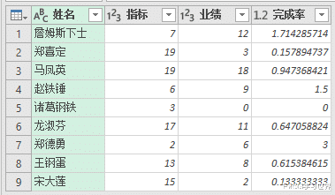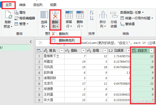 输出:切换到“选择列”的方式 --> 选择“业绩”