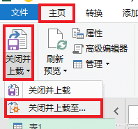 11. 选择任务栏的“主页”-->“关闭并上载”-->“关闭并上载至”