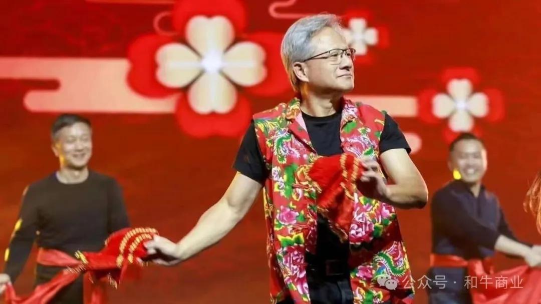 2024年1月,黄仁勋在上海办公室的年会上扭秧歌