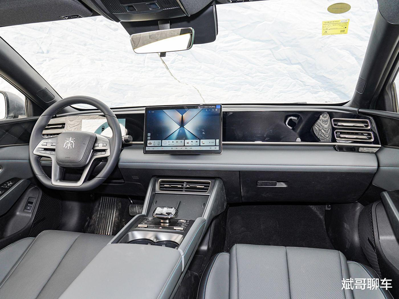 进入车内,秦L DM-i的座舱氛围是典型的家用取向,温馨且不失科技感。中控台采用了对称的T字形布局,线条简洁流畅,营造出开阔的视觉感受。车内的实体按键数量不多,大部分功能都集成到了屏幕中,使得整个中控区域看起来非常清爽。