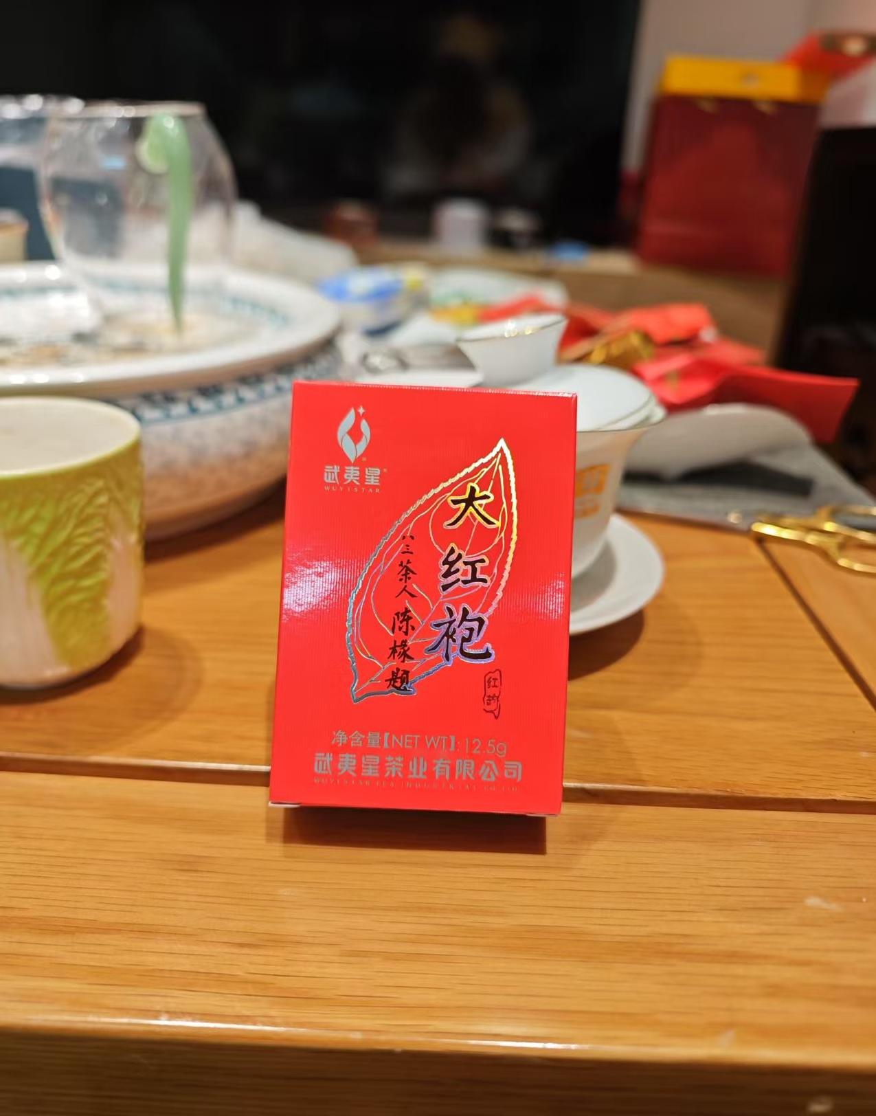 这次他特别兴奋,因为拿到了市面上少见的潮汕版武夷星红韵12.5g。